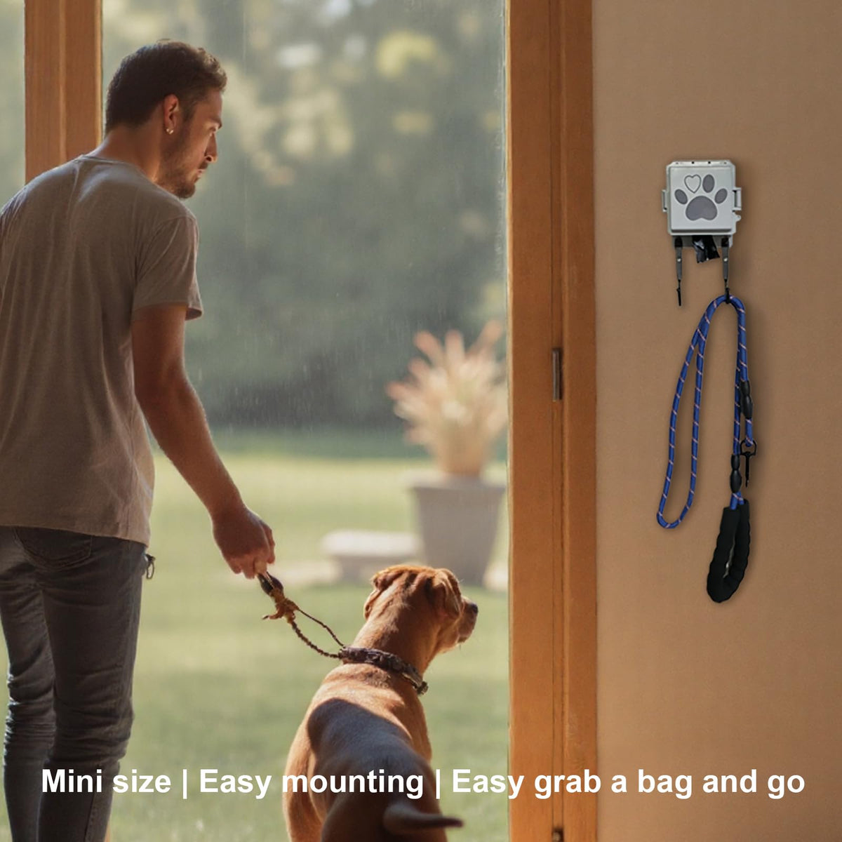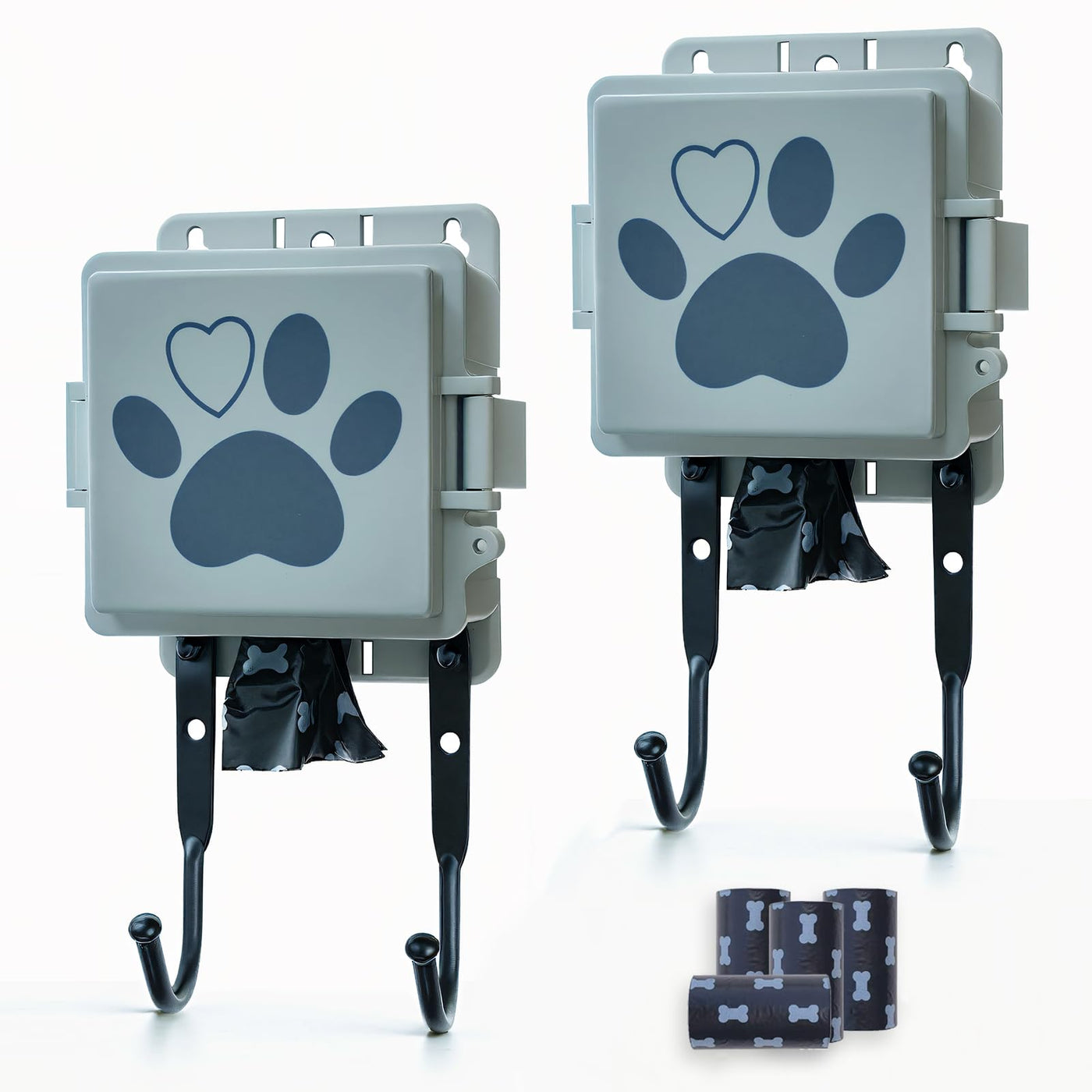 Dog Poop Bag Holder Wall Mount Pet Waste Bags Dispenser With Hooks And 2 Rolls, 2 Pcs Set, 2 Mini Waterproof Doggy Bag Container
