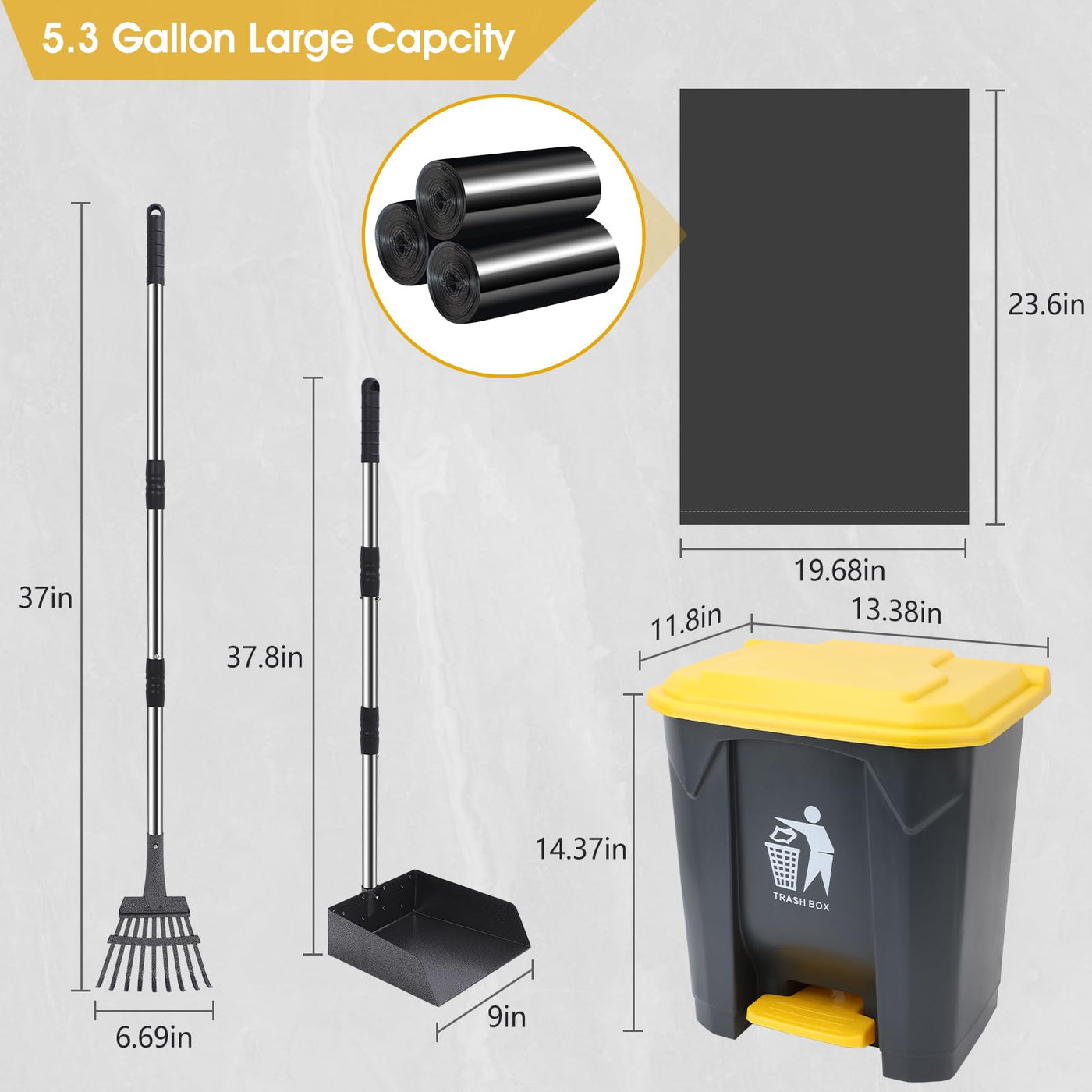 The Upgraded Dog Poop Trash Can Set, Your Great Solution For Convenient And Efficient Pet Waste Management. This Set Includes A Sturdy 20L Pp Material Dog Poop Bucket, A Removable Inner Bucket, A Flexible Metal Dog Poop Scoop, An Efficient Poop Rake, And 90 Garbage Bags, Ensuring You Have Everything . Product Style: 20L With Portable Bucket + 90Pcs Garbage Bags Color: Gray + Yellow Dog Poop Trash Can Size: 36.5*34*30Cm Garbage Bag Size: 50*60Cm Dog Poop Trash Can Material: Pp Material Dog Poop Trash Bucket Size: 20*23*7.2Cm Dog Poop Trash Rake Size: 13*22Cm 28.5Cm Pole: 3 34Cm Pole: 3 Metal Material: Cold-Rolled Plate Pole Material: 201 Stainless Steel + Plastic Configuration: Trash Bucket + Trash Rake + English Manual Dog Poop Target Height: 94Cm Width 17Cm Dog Poop Trash Bucket Height: 96Cm Width 23Cm