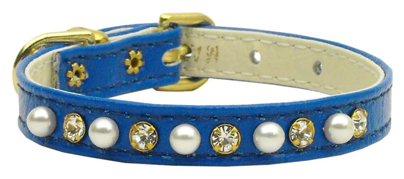 Dog, Puppy and Pet Collar, 3/8" Wide Pearl & Clear Crystals Turquoise 8