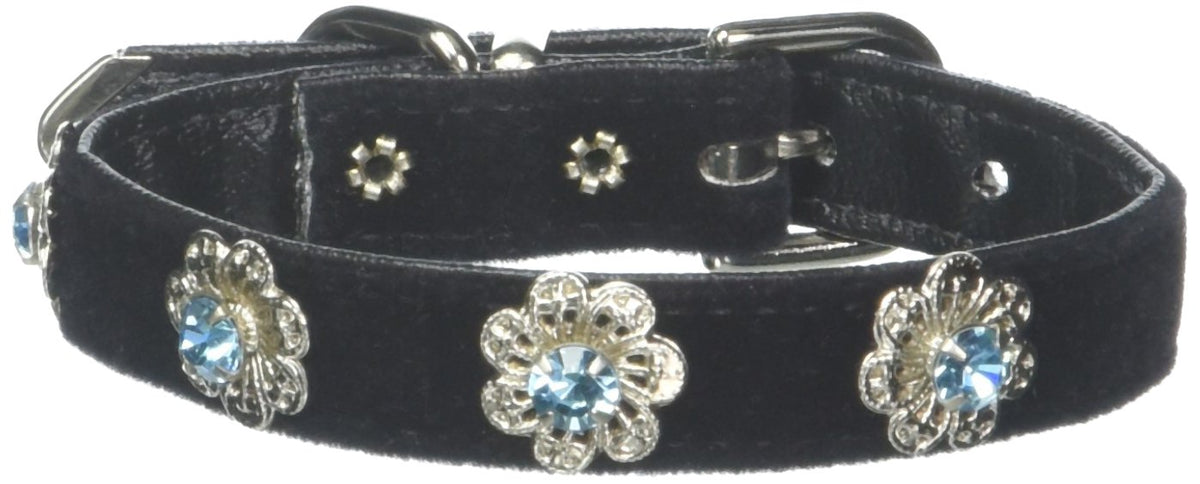 Dog, Puppy and Pet Collar, Black Velvet Crystal Elite Aqua 10