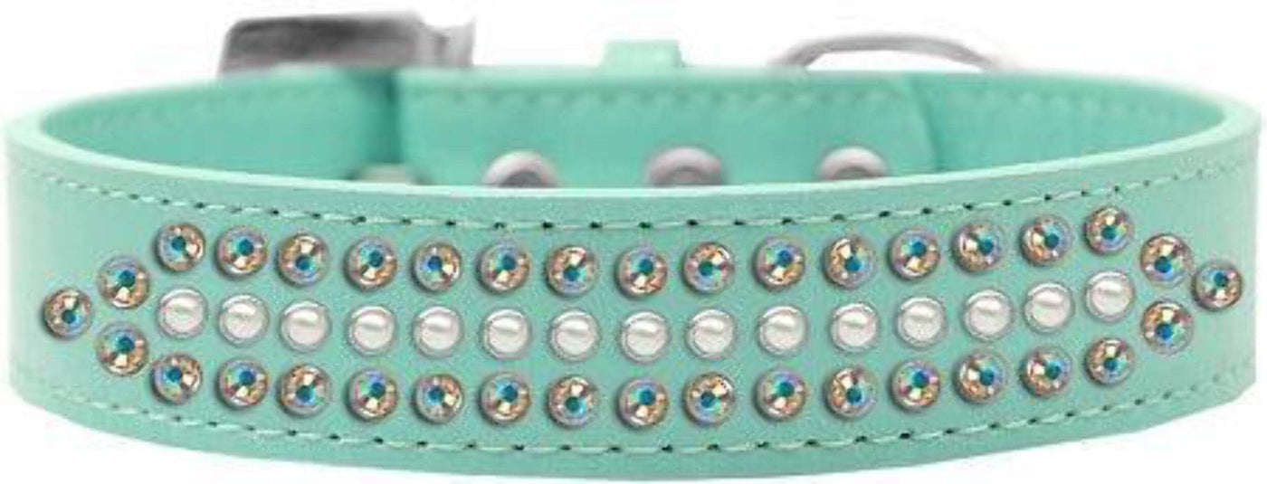 Dog, Puppy and Pet Fashion Collar, Ritz Pearl & Aurora Borealis Crystals Rimsets Aqua 16