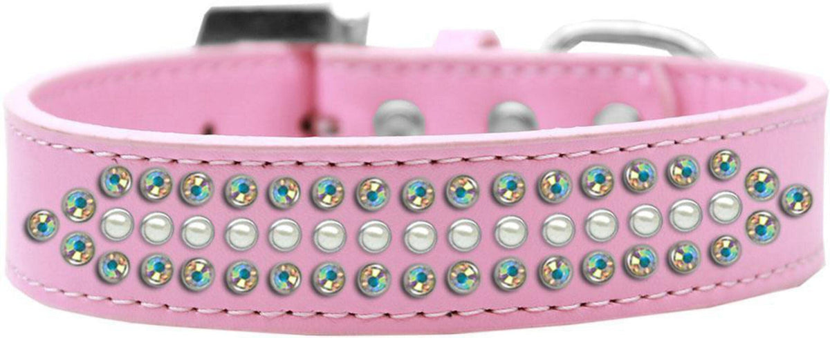 Dog, Puppy and Pet Fashion Collar, Ritz Pearl & Aurora Borealis Crystals Rimsets Bright Pink 18