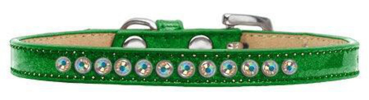 3/8'' wide collar adorned with 1 row of rhinestones and a rhinestone buckle