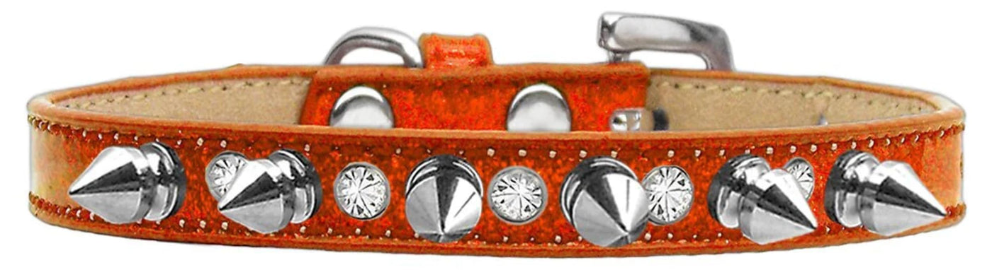 Dog, Puppy and Pet Ice Cream Collar, Crystal & Silver Spikes Blue 16