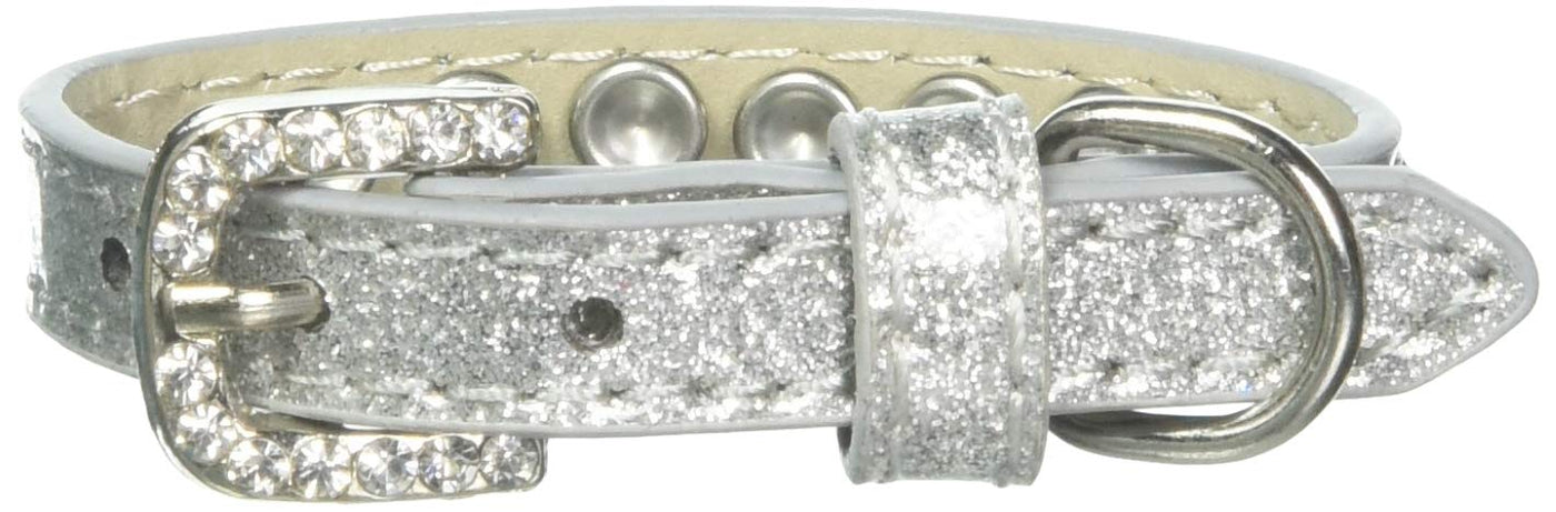 3/8'' wide collar adorned with 1 row of rhinestones and a rhinestone buckle