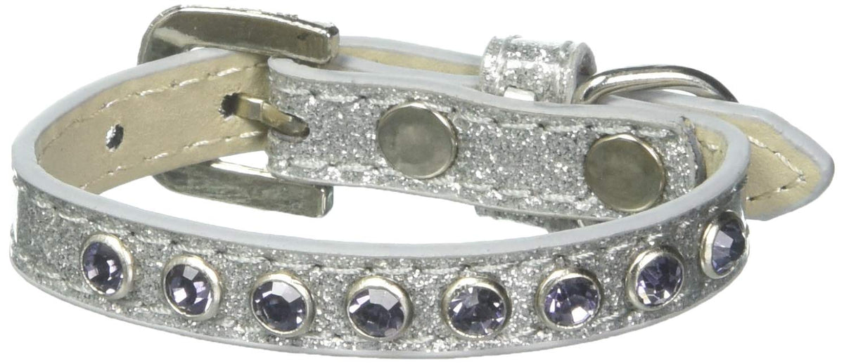 Mirage Pet Products Purple Crystal Silver Puppy Dog Ice Cream Collar Size 8. 3/8'' Wide Collar Adorned With 1 Row Of Rhinestones And A Rhinestone Buckle. Fits A Neck Size From 5-7''. Made In The Usa.