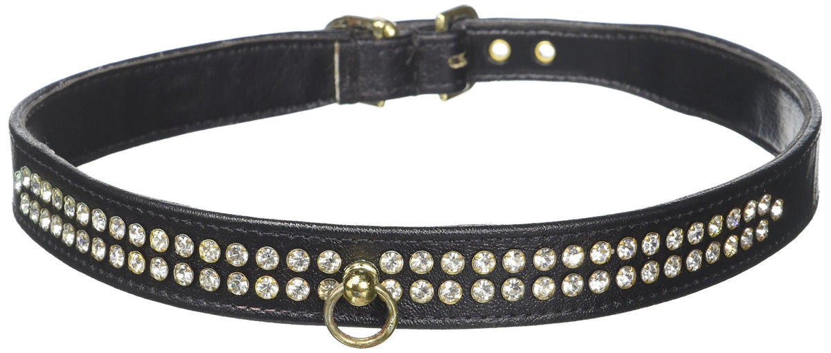 Q: What makes this collar different from other dog collars?A: This collar stands out due to its unique design, featuring two rows of handset Austrian clear crystals, adding a touch of elegance while still being functional and comfortable for your pet.