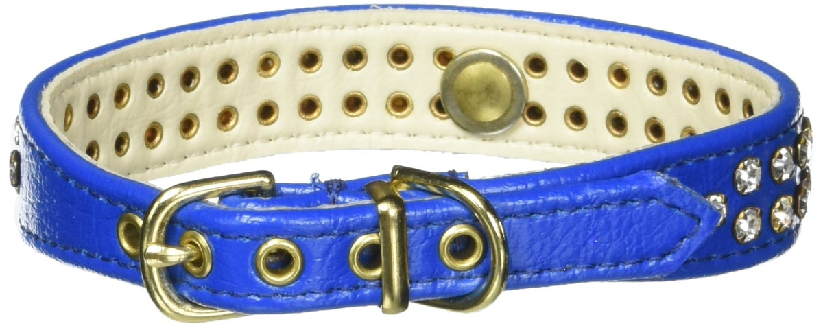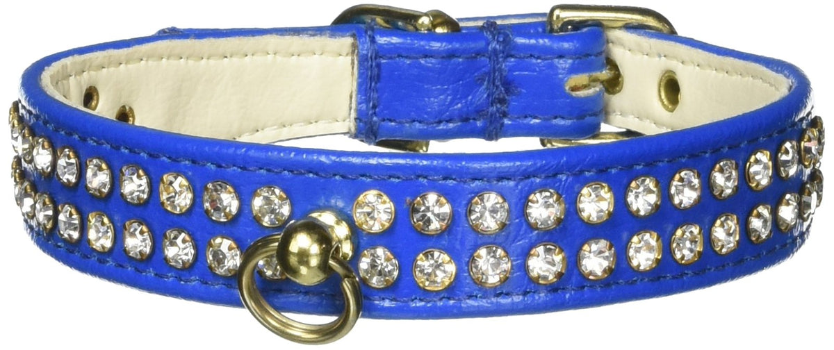 Q: What materials are used in the construction of this collar?A: The collar is made from durable leather and features two rows of beautiful Austrian clear crystals for added style.