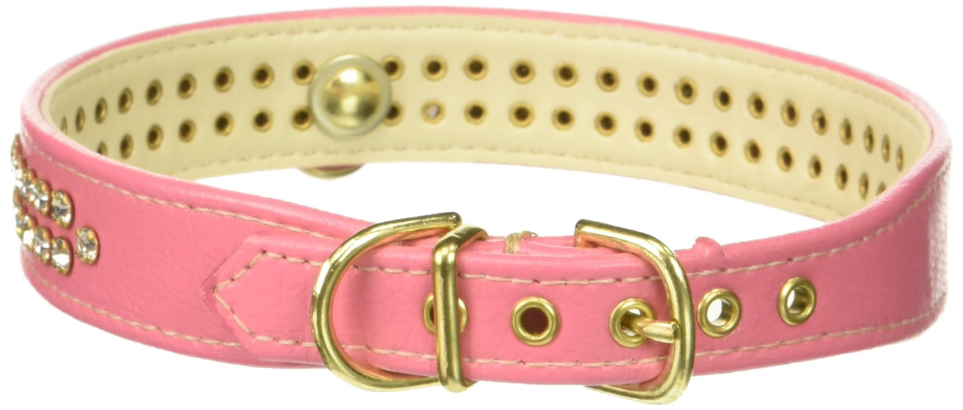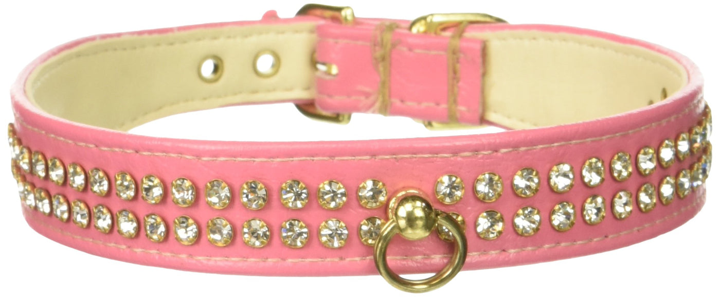 Q: What makes this collar different from other pet collars?A: This collar stands out due to its beautiful design featuring two rows of handset Austrian clear crystals, adding a touch of elegance while being made in the USA for quality assurance.