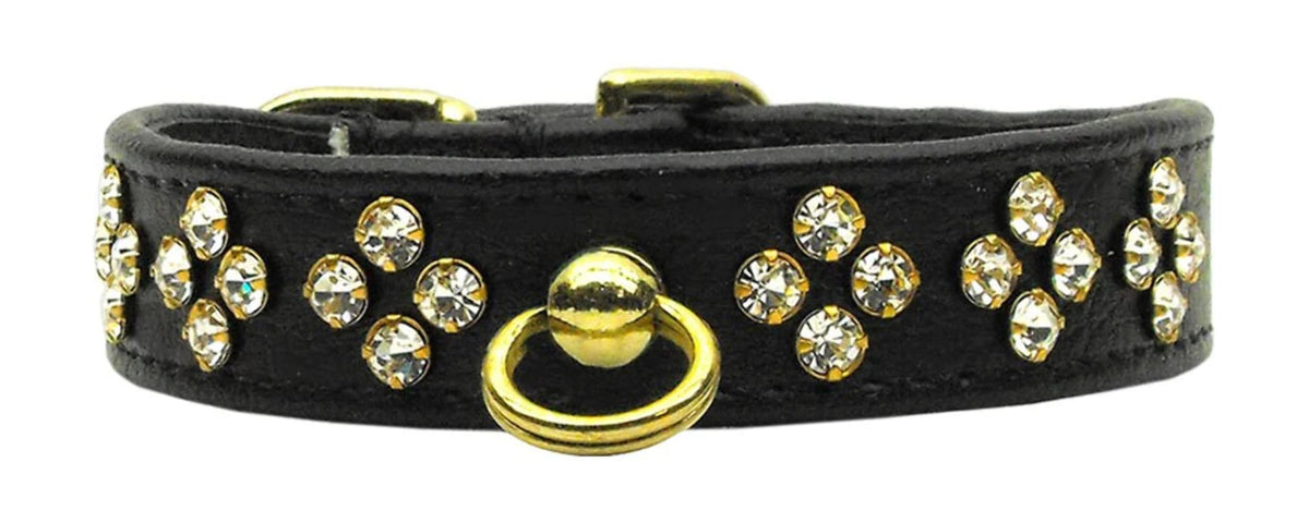 We love the sparkling crystals on this dog collar! This ¾" wide collar is jeweled with elegant diamond clusters of prong-set rhinestones, and comes with a center post where an I.D. tag can be attached. This collar is available in an array of sizes and colors.