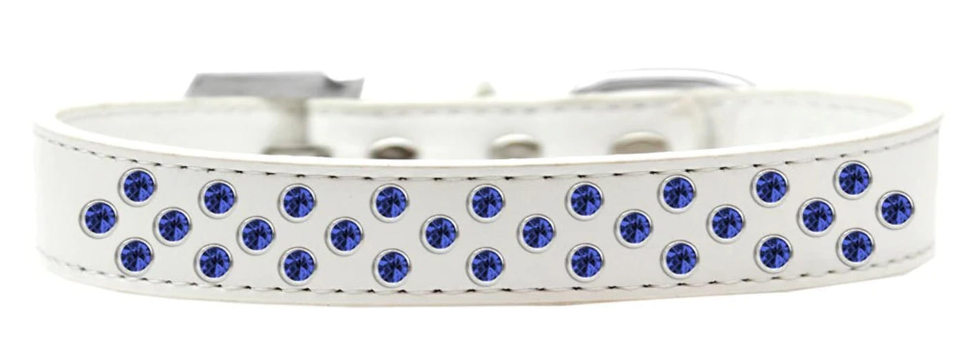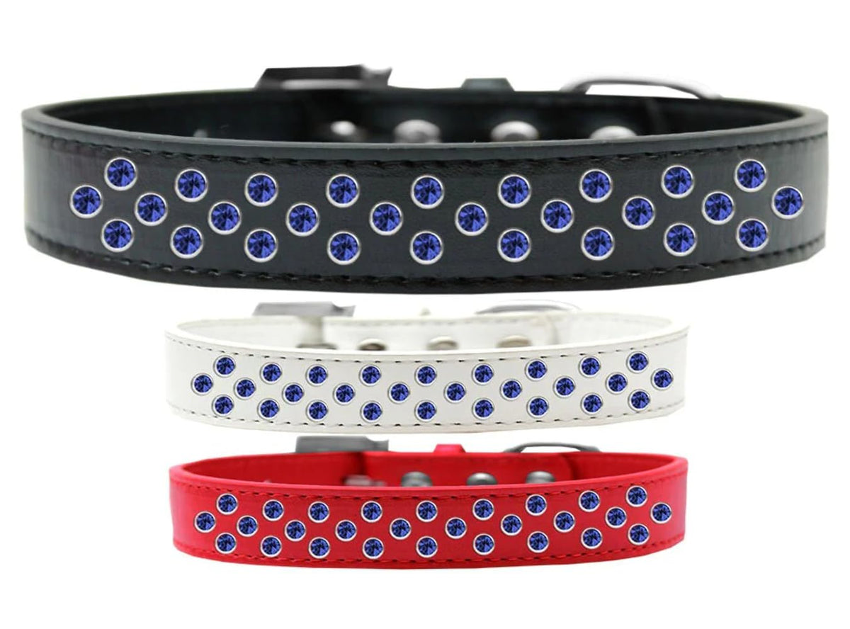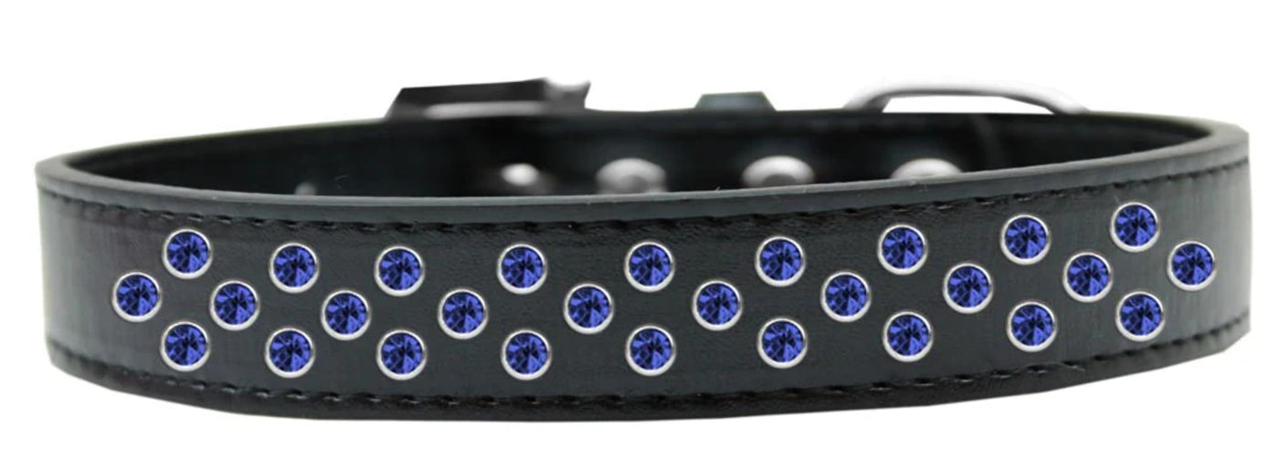 Sprinkles Dog Collar Blue Crystals Size 20 Black. 3/4'' Wide Collar Adorned With 2 Sprinkled Rows Of Rhinestones And A Rhinestone Buckle.. Made In The Usa. Fits A Neck Size From 16-18''.