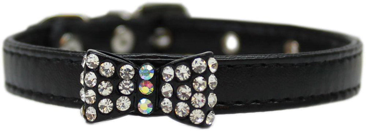 3/8'' Wide Faux Leather Collar With A Rhinestone Encrusted Bow And Buckle. Product Summary : New Pet Products/Bow-Edacious Crystal Dog Collar@Dog Collars And Leashes/Bow-Edacious Crystal Dog Collar.