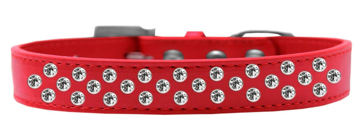 Sprinkles Dog Collar Clear Crystals Size 14 White. 3/4'' Wide Collar Adorned With 2 Sprinkled Rows Of Rhinestones And A Rhinestone Buckle.. Made In The Usa. Fits A Neck Size From 10-12''.