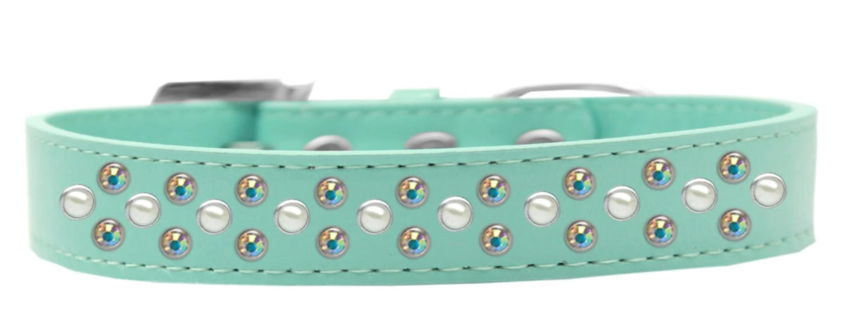 Sprinkles Dog Collar Pearl And Ab Crystals Size 18 Red. 3/4'' Wide Collar Adorned With 2 Sprinkled Rows Of Rhinestones And A Rhinestone Buckle.. Made In The Usa. Fits A Neck Size From 14-16''.