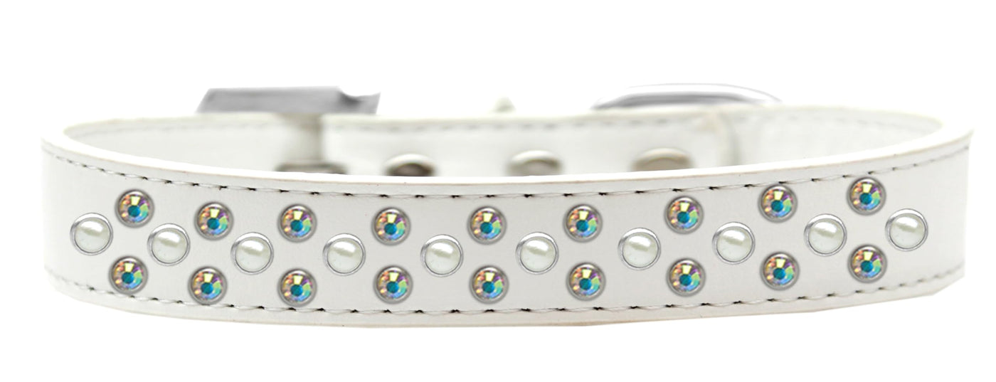 Sprinkles Dog Collar Pearl And Ab Crystals Size 14 White. 3/4'' Wide Collar Adorned With 2 Sprinkled Rows Of Rhinestones And A Rhinestone Buckle.. Made In The Usa. Fits A Neck Size From 10-12''.