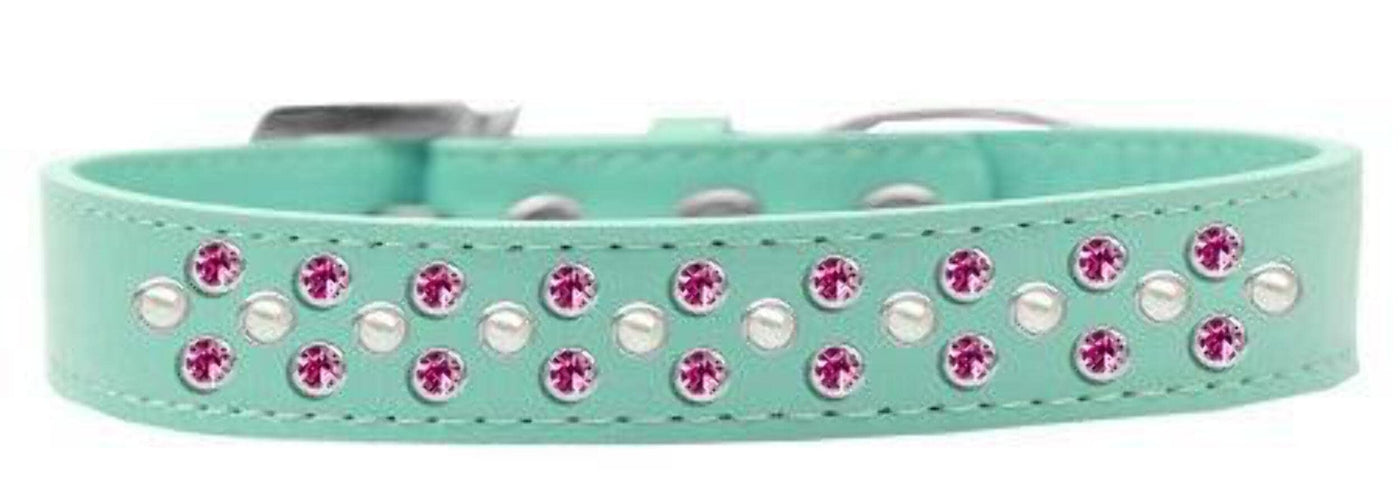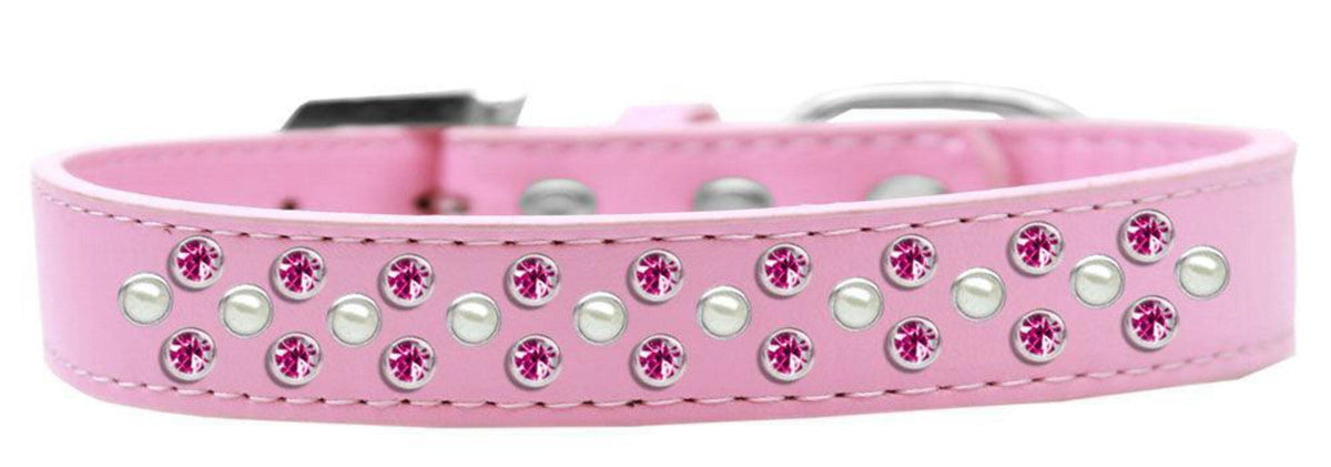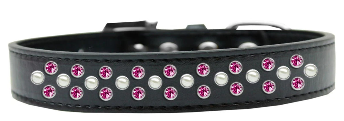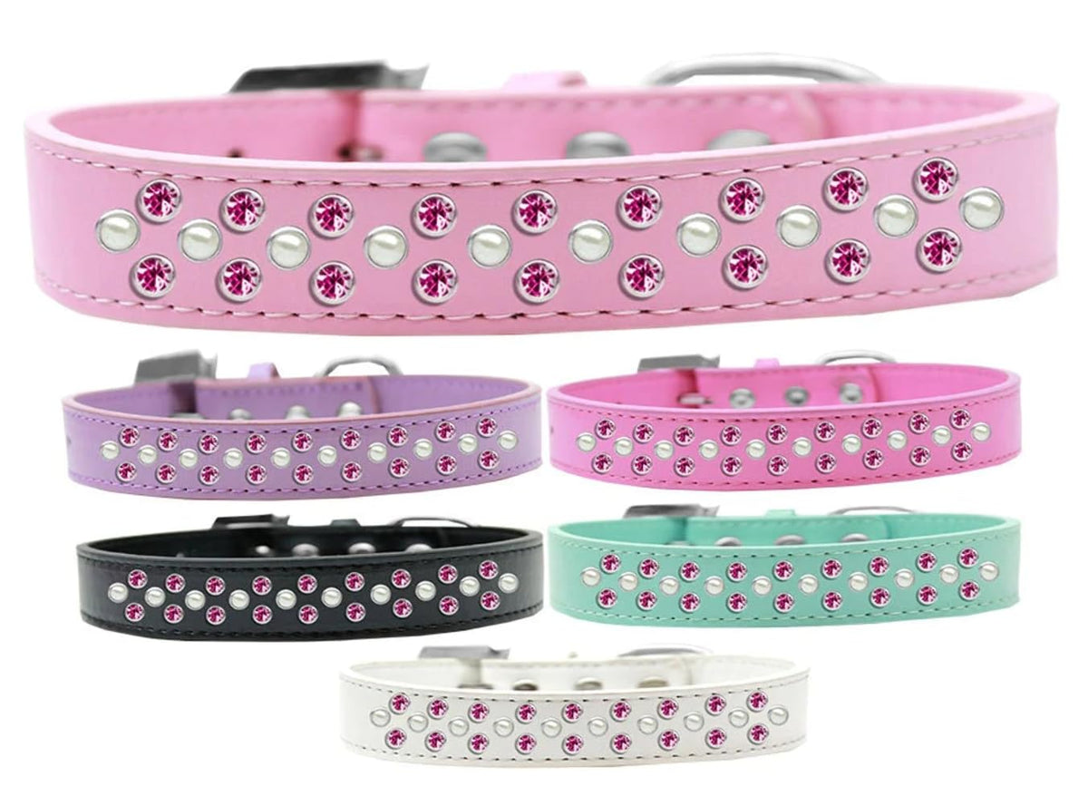 Sprinkles Dog Collar Pearl And Bright Pink Crystals Size 20 Bright Pink. 3/4'' Wide Collar Adorned With 2 Sprinkled Rows Of Rhinestones And A Rhinestone Buckle.. Made In The Usa. Fits A Neck Size From 16-18''.