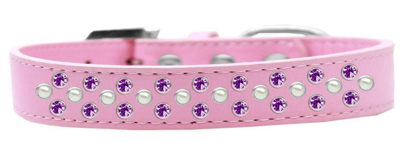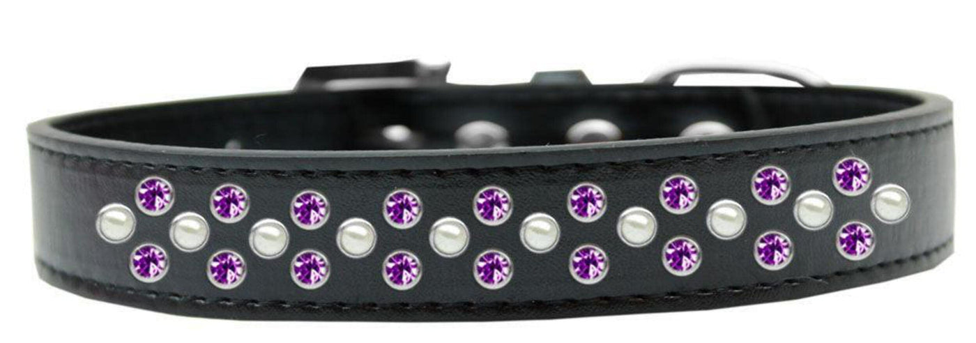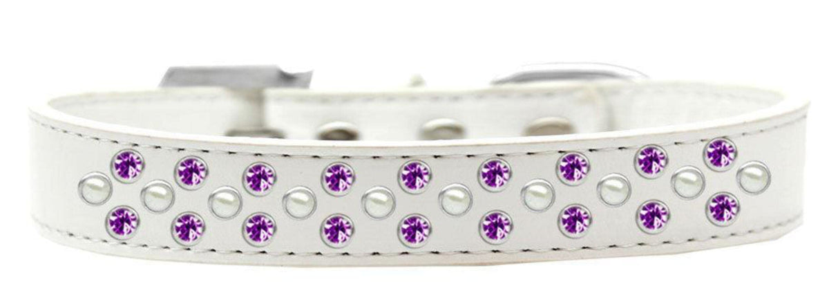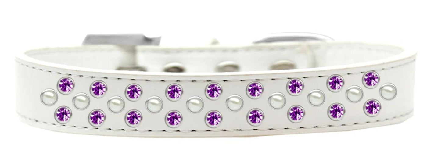 Sprinkles Dog Collar Pearl And Purple Crystals Size 12 White. 3/4'' Wide Collar Adorned With 2 Sprinkled Rows Of Rhinestones And A Rhinestone Buckle.. Made In The Usa. Fits A Neck Size From 8-10''.