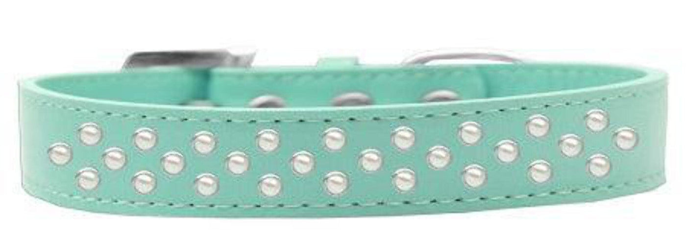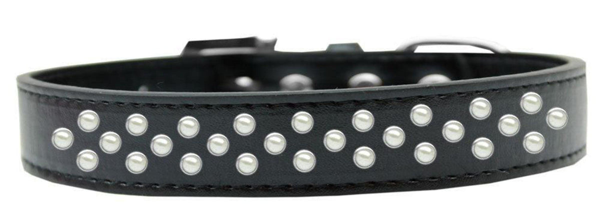 These stellar 3 Row Crystal Collars which we lovingly call our ''Sprinkles'' line are a faux leather featuring crystals around the outside. This collar is available in multiple collar/stone colors and an array of sizes. These soft collars are 3/4'' wide and features three sprinkled rows of pearl stones.