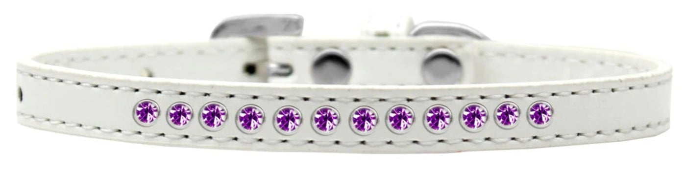 Mirage Pet Products Purple Crystal Aqua Puppy Dog Collar Size 8. 3/8'' Wide Collar Adorned With 1 Row Of Rhinestones And A Rhinestone Buckle. Fits A Neck Size From 5-7''. Made In The Usa.