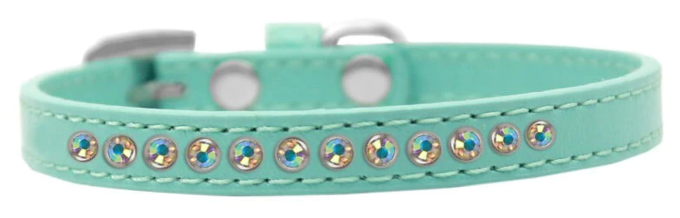 Q: Can this collar be used for both dogs and puppies?A: Yes, the Aurora Borealis Crystal Rimsets collar is perfect for both dogs and puppies, making it a versatile choice for pet owners.