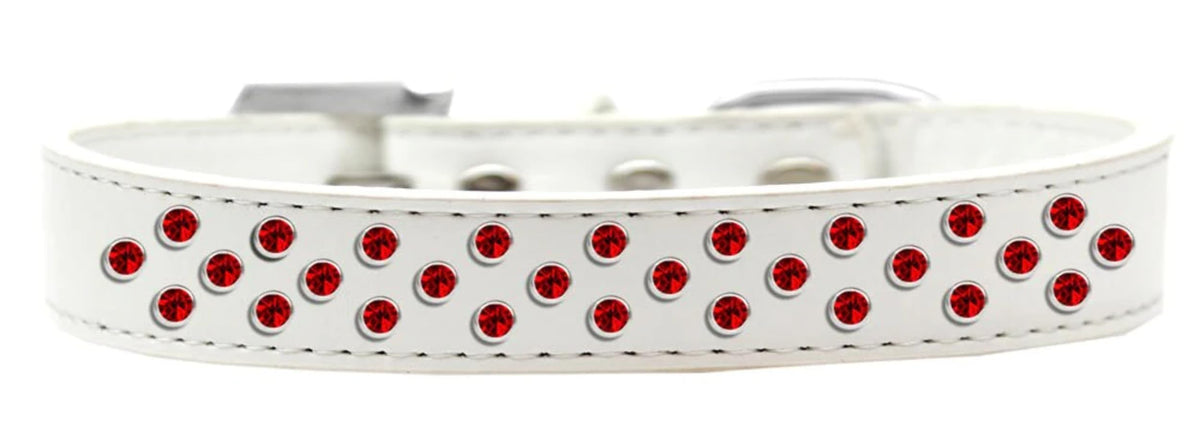 Sprinkles Dog Collar Red Crystals Size 12 White. 3/4'' Wide Collar Adorned With 2 Sprinkled Rows Of Rhinestones And A Rhinestone Buckle.. Made In The Usa. Fits A Neck Size From 8-10''.