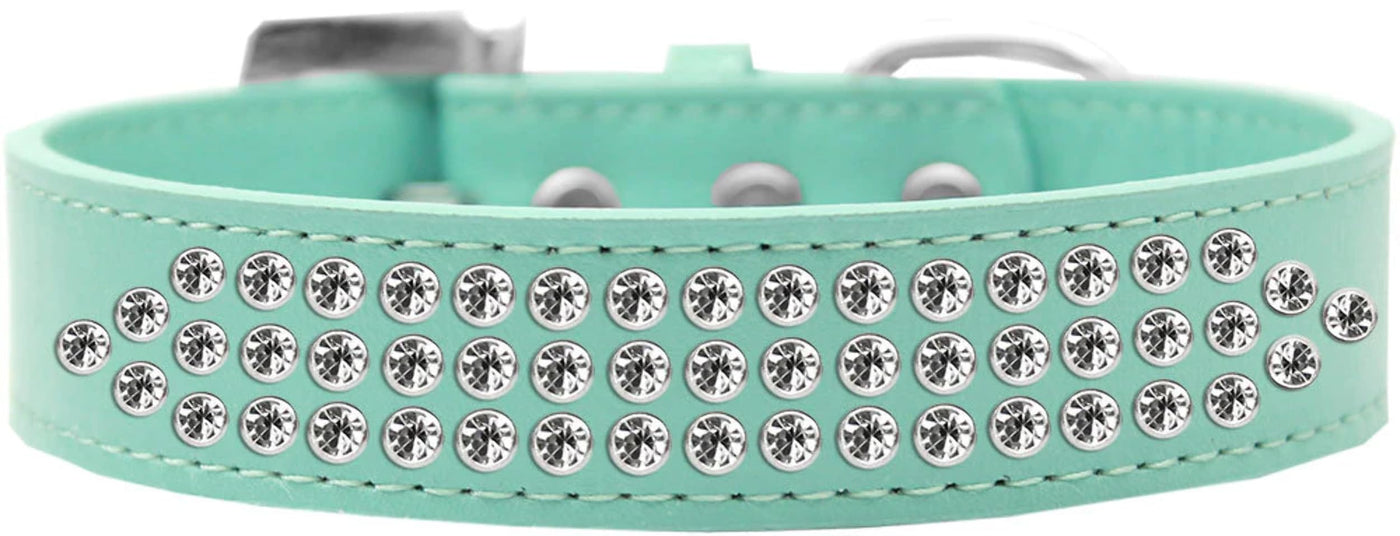 Three rows of gorgeous crystals on a durable colorful collar. Finished off with a crystal buckle for the ultimate blingy accessory for your furry friend!.