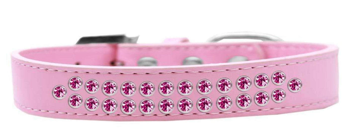 Dog, Puppy & Pet Fashion Collar, Two Row Bright Pink Crystal Rimsets Light Pink 12