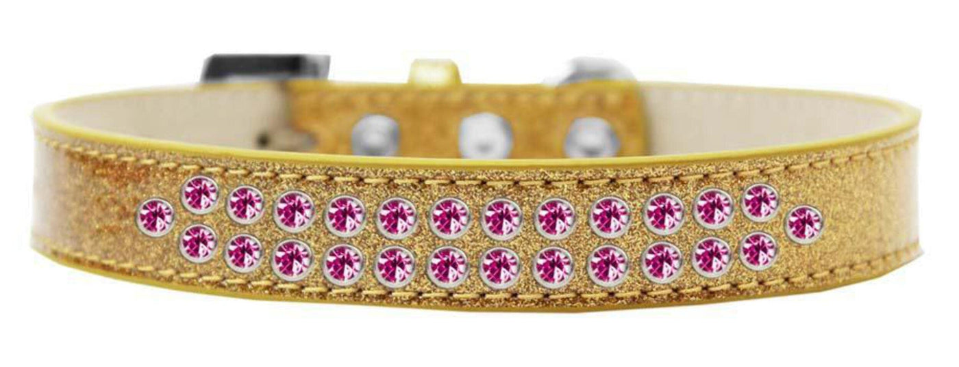 Mirage Pet Products Two Row Bright Pink Crystal Light Pink Dog Collar Size 12. 3/4'' Wide Collar Adorned With 2 Rows Of Rhinestones And A Rhinestone Buckle. Fits A Neck Size From 8-10''. Made In The Usa.