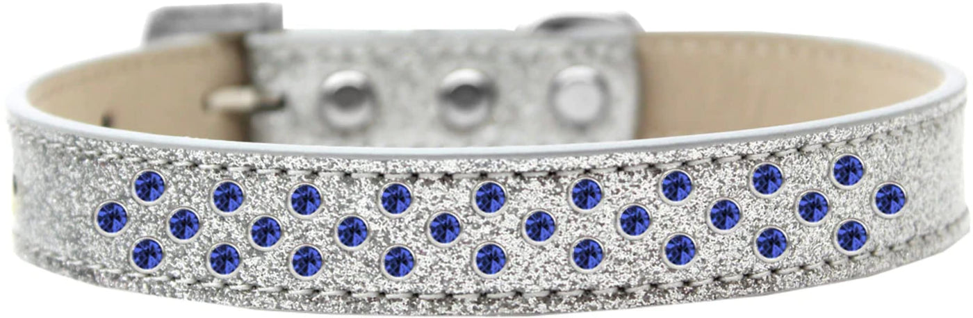 Sprinkles Ice Cream Dog Collar Blue Crystals Size 18 Silver. 3/4'' Wide Collar Adorned With 2 Sprinkled Rows Of Rhinestones And A Rhinestone Buckle.. Made In The Usa. Fits A Neck Size From 14-16''.