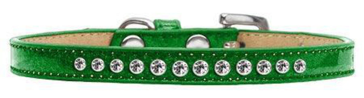 3/8'' wide collar adorned with 1 row of rhinestones and a rhinestone buckle