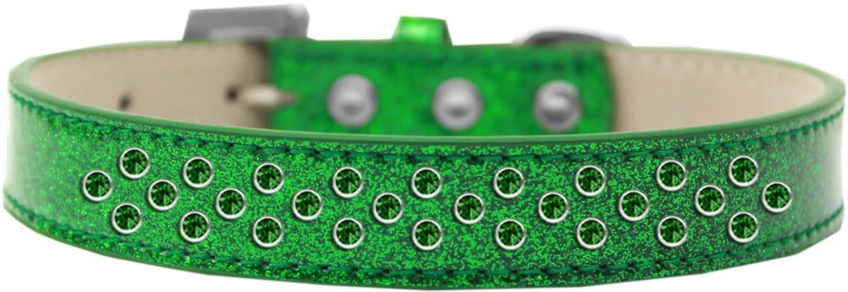 Sprinkles Ice Cream Dog Collar Emerald Green Crystals Size 12 Pink. 3/4'' Wide Collar Adorned With 2 Sprinkled Rows Of Rhinestones And A Rhinestone Buckle.. Made In The Usa. Fits A Neck Size From 8-10''.