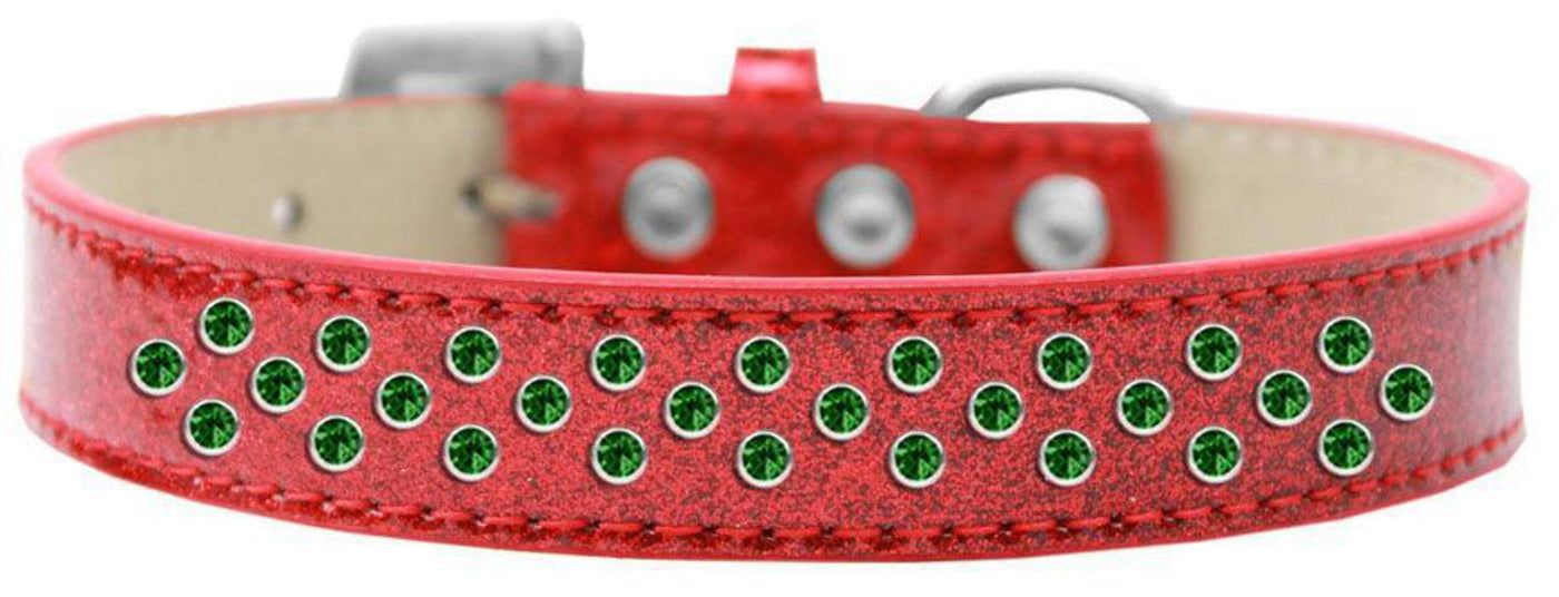 Sprinkles Ice Cream Dog Collar Emerald Green Crystals Size 18 Pink. 3/4'' Wide Collar Adorned With 2 Sprinkled Rows Of Rhinestones And A Rhinestone Buckle.. Made In The Usa. Fits A Neck Size From 14-16''.