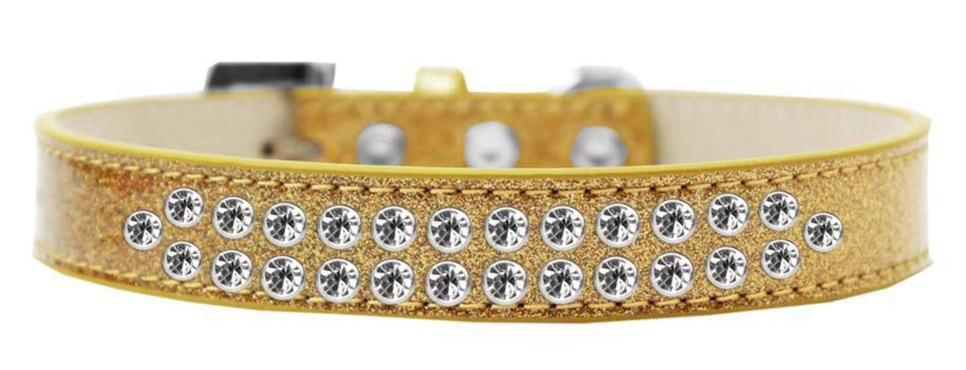 Mirage Pet Products Two Row Clear Crystal Gold Ice Cream Dog Collar Size 12. 3/4'' Wide Collar Adorned With 2 Rows Of Rhinestones And A Rhinestone Buckle. Fits A Neck Size From 8-10''. Made In The Usa.