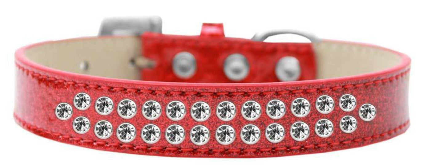 3/4'' wide collar adorned with 2 rows of rhinestones and a rhinestone buckle