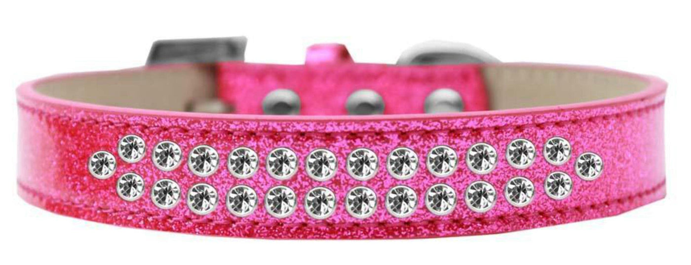 Mirage Pet Products Two Row Clear Crystal Pink Ice Cream Dog Collar Size 20. 3/4'' Wide Collar Adorned With 2 Rows Of Rhinestones And A Rhinestone Buckle. Fits A Neck Size From 16-18''. Made In The Usa.