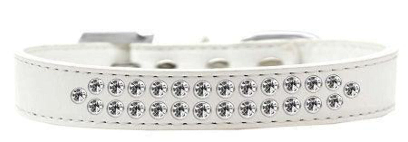 Mirage Pet Products Two Row Clear Crystal Red Ice Cream Dog Collar Size 20. 3/4'' Wide Collar Adorned With 2 Rows Of Rhinestones And A Rhinestone Buckle. Fits A Neck Size From 16-18''. Made In The Usa.