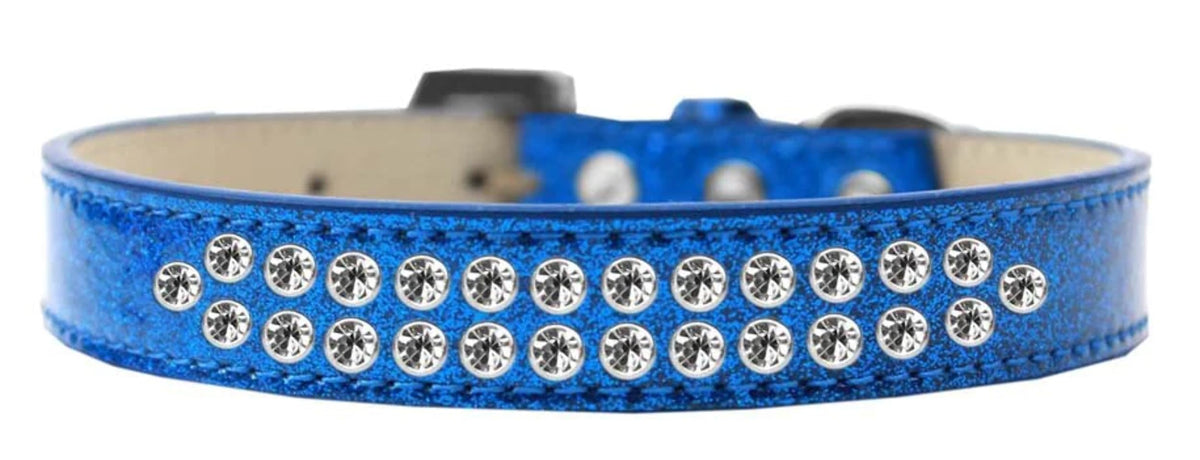 3/4'' wide collar adorned with 2 rows of rhinestones and a rhinestone buckle