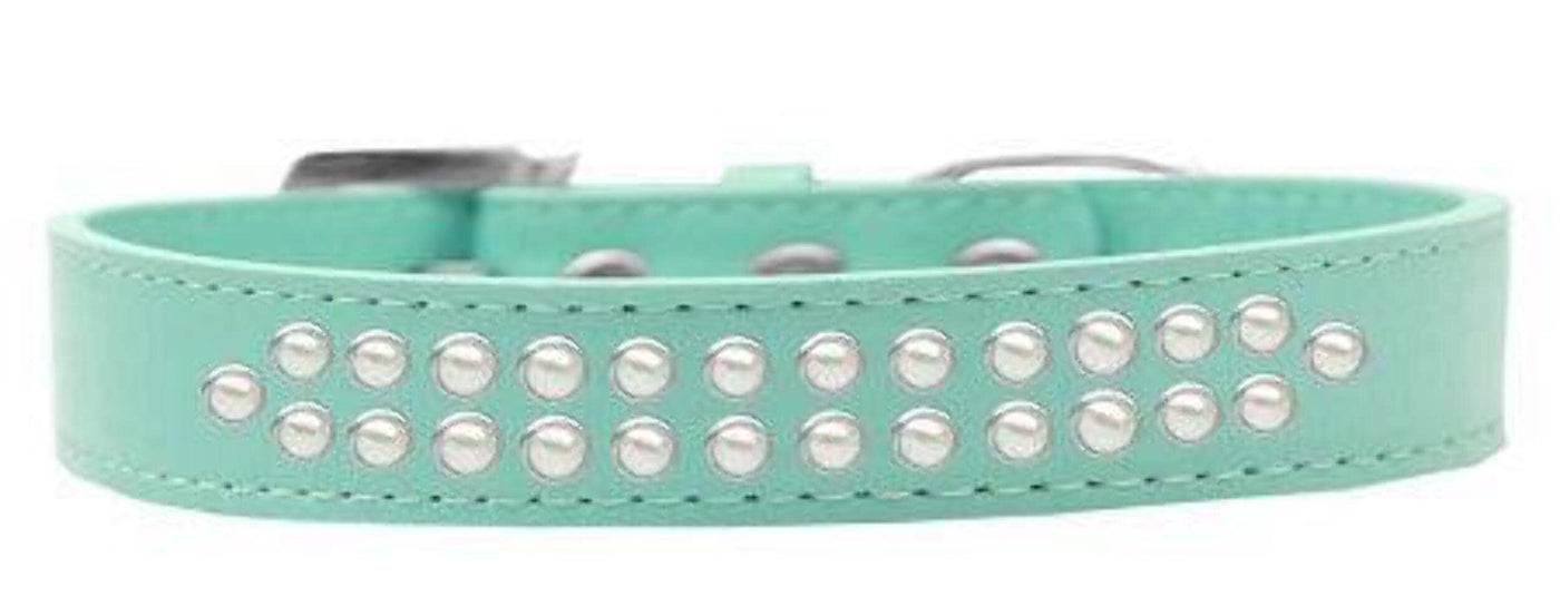 Two Row Pearl Size 20 Emerald Green Ice Cream Dog Collar. 3/4'' Wide Collar Adorned With 2 Rows Of Pearls And A Rhinestone Buckle.. Made In The Usa. Fits A Neck Size From 16-18''.