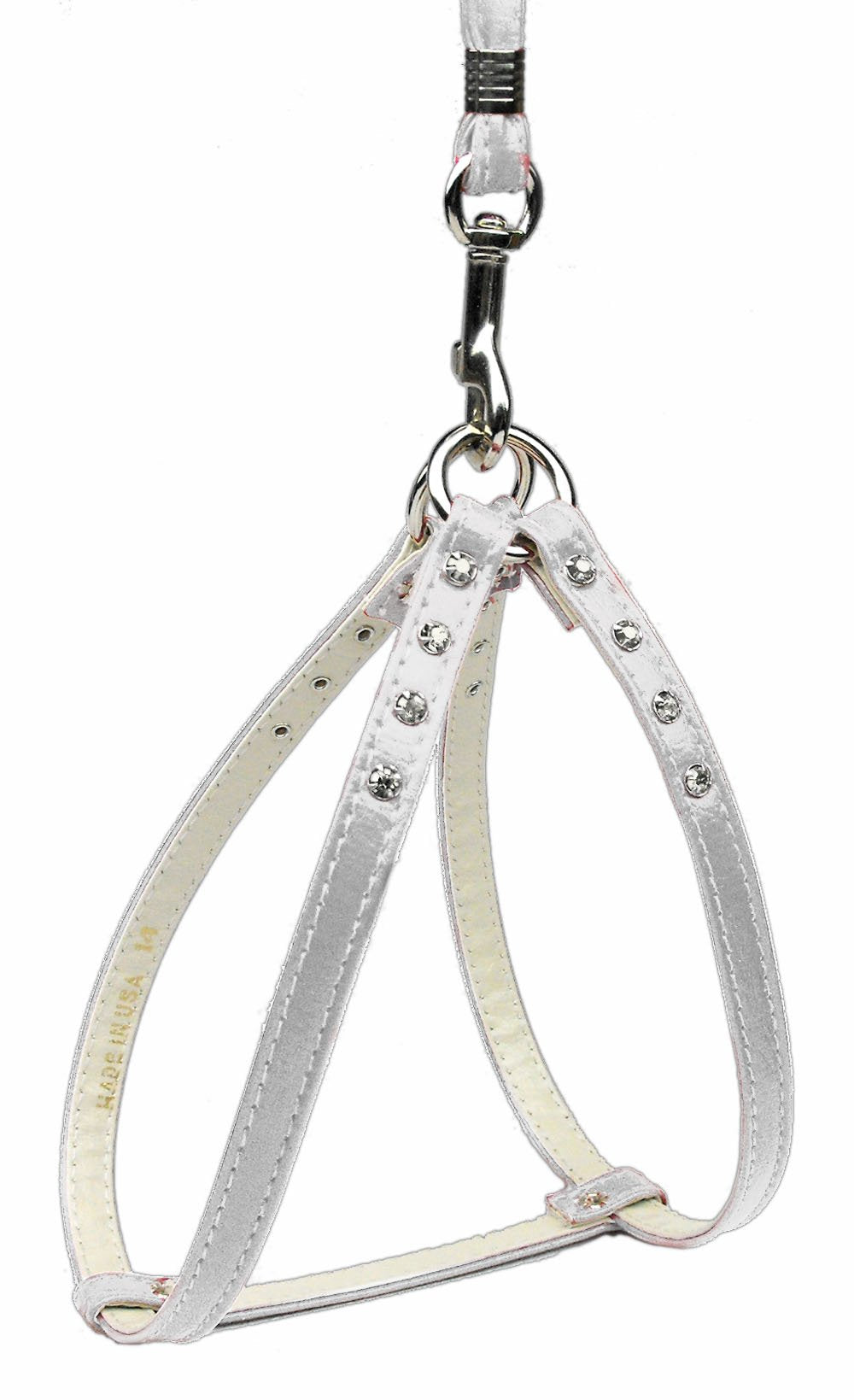 Q: Does this harness come in different colors or styles?A: This specific model features a white harness adorned with colored crystal rhinestones. However, check our product listings for other colors and styles that may be available.