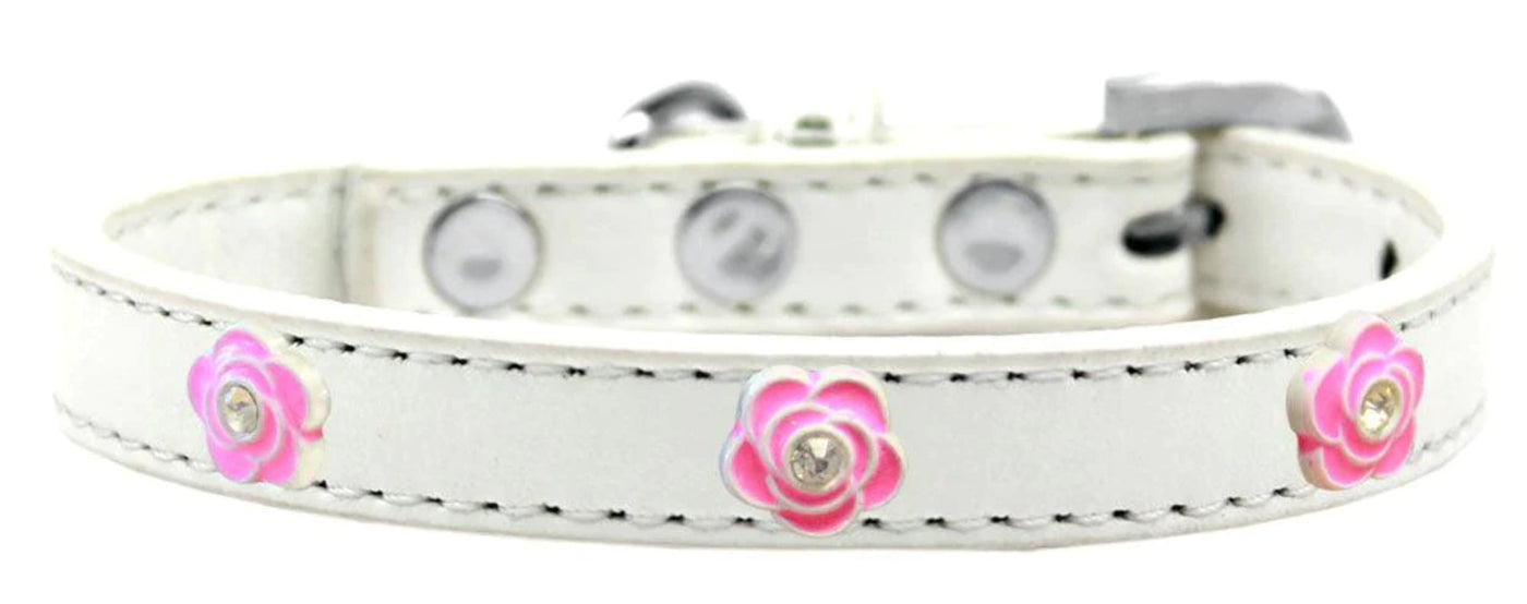 Dog, Puppy & Pet Widget Fashion Collar, Bright Pink Roses White 18