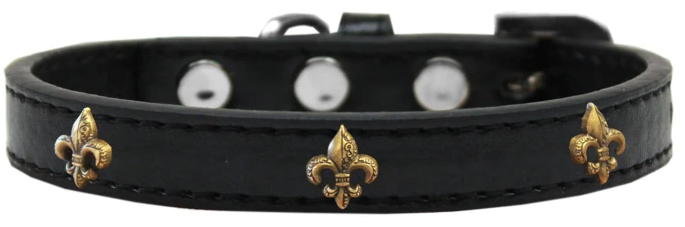 Dog, Puppy & Pet Widget Fashion Collar, Bronze Fleur De Lis Red 10