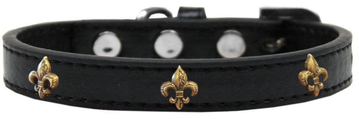 Dog, Puppy & Pet Widget Fashion Collar, Bronze Fleur De Lis White 20