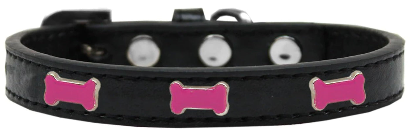 Dog, Puppy & Pet Widget Fashion Collar, Pink Bone Black 10