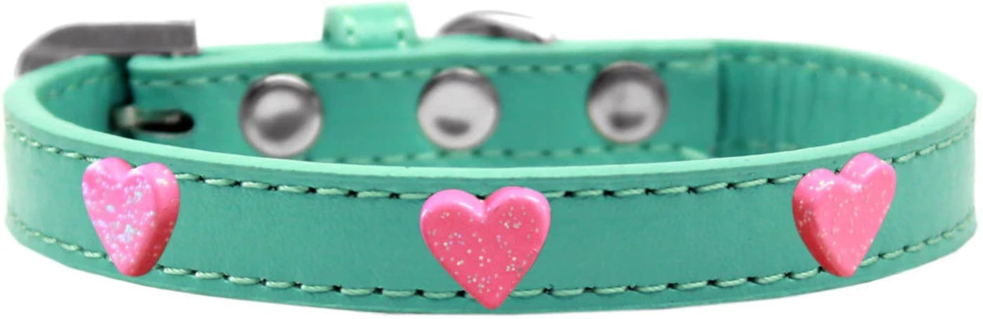 Dog, Puppy & Pet Widget Fashion Collar, Pink Glitter Heart Red 16