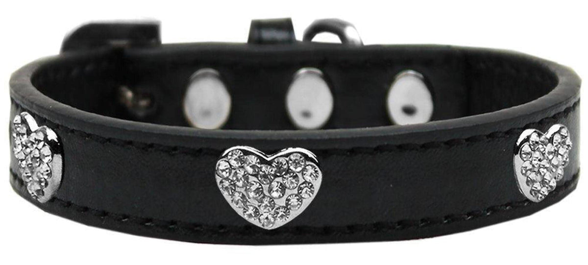 This stellar line of collars is sure to turn some heads! An amazing product that features glistening crystal hearts on our soft leather collars. Sizes 10 and 12 include 3 small crystal hearts. Sizes 14 and 16 include 5 small crystal hearts. Sizes 18 and 20 include 4 large crystal hearts.