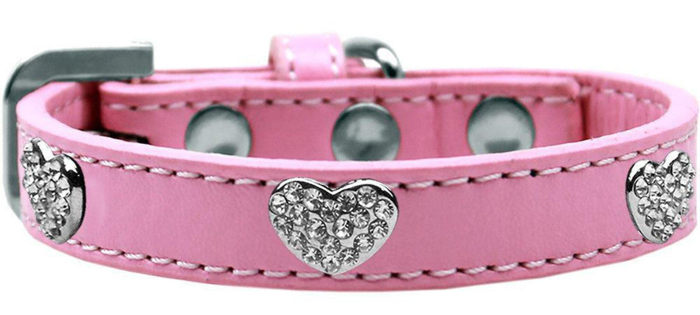 This stellar line of collars is sure to turn some heads! An amazing product that features glistening crystal hearts on our soft leather collars. Sizes 10 and 12 include 3 small crystal hearts. Sizes 14 and 16 include 5 small crystal hearts. Sizes 18 and 20 include 4 large crystal hearts.