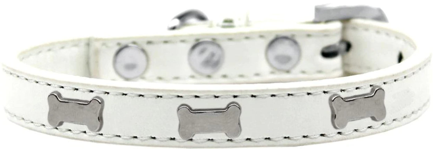 Dog, Puppy & Pet Widget Fashion Collar, Silver Bone White 10