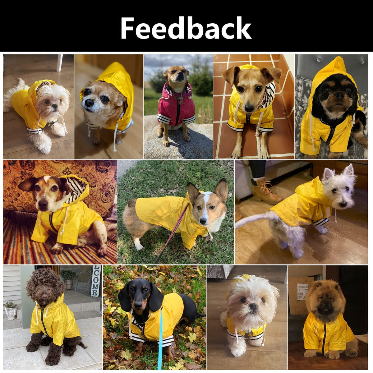 Q: What kind of dogs is this raincoat suitable for?A: This raincoat is perfect for small to medium-sized dogs weighing between 8lbs to 70lbs, including breeds like bichon, yorkie, terrier, schnauzer, poodle, and many more. The snug fit is designed for these breeds, ensuring comfort and protection.