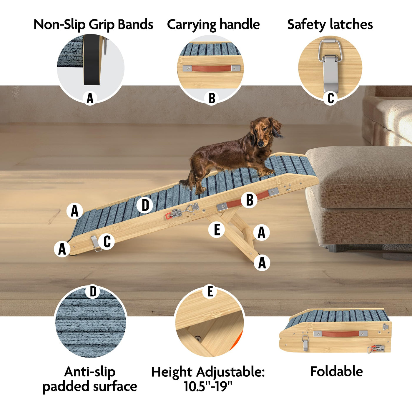 Elevated Comfort & Confidence For Your Pet - Pet Shop Hq 34 Foldable Dog Ramp For Beds & Couches Give Your Dog Or Cat The Independence They Deserve - Without Compromising On Safety, Style, Or Your Homes Space. The Pet Shop Hq Adjustable Dog Ramp Is Thoughtfully Designed For Small Dogs, Aging Pets, Or Breeds Prone To Joint Issues Like Dachshunds, Corgis, And Chihuahuas, Helping Them Safely Reach Higher Surfaces Like Your Bed, Couch, Or Sofa Without The Risks Of Jumping Or Climbing. Durable Bamboo Frame Built For Daily Use Made With Premium, Chemical-Free Bamboo, Our Dog Ramp Is More Than Just A Pretty Face. Its Crafted To Be Ultra-Durable, Supporting Pets Up To 200 Lbs With Ease, While Being Naturally Moisture-Resistant And Long-Lasting. The Sleek Wooden Design Also Blends Beautifully Into Your Homes Decor - No Unsightly Plastic Or Metal Here. Customizable Height With 4 Secure Settings Not All Furniture Is The Same Height, And Neither Are Your Pets Needs. Thats Why Our Folding Pet Ramp Features 4 Adjustable Height Levels (Up To 19 ), Giving You The Flexibility To Use It Across Multiple Spaces - From Your Bed To Your Sofa, And Even Near Vehicles With Lower Entry Points. The Built-In Landing Platform At The Top Offers Your Pet An Extra Moment To Stabilize Before Stepping Off. No Slips, No Worries - Safety Comes First The Pet Shop Hq Pet Ramp Features Anti-Slip Rubber Feet For A Rock-Solid Base, And A Paw-Friendly Textured Surface That Helps Your Pet Maintain Traction Every Step Of The Way. Whether Theyre Tiny Or Timid, Your Pet Can Climb With Confidence Without Slipping Or Skidding, Even On Slick Floors. Compact, Foldable, & Travel-Ready When Its Time To Clean Or Reclaim Your Space, Just Fold The Ramp Flat And Slide It Under Your Bed Or Couch. Lightweight Yet Sturdy, Its Also Ideal For On-The-Go Use - Take It With You For Weekend Getaways, Vet Visits, Or Anytime Your Pup Needs Help Accessing High Spots In A New Environment. Why Pet Parents Love The Pet Shop Hq Ramp Trusted By Thousands Of Small Dog & Senior Pet Owners Ideal For Dachshunds, Yorkies, French Bulldogs, Shih Tzus, And More Reduces Stress On Hips And Joints For Aging Or Recovering Pets No Assembly Required - Unfolds In Seconds For Immediate Use Stylish, Natural Wood Frame Complements Any Room Give Your Beloved Companion The Comfort, Independence, And Safety They Deserve. With The Pet Shop Hq Dog Ramp, Climbing Up Has Never Been Easier Or Safer.
