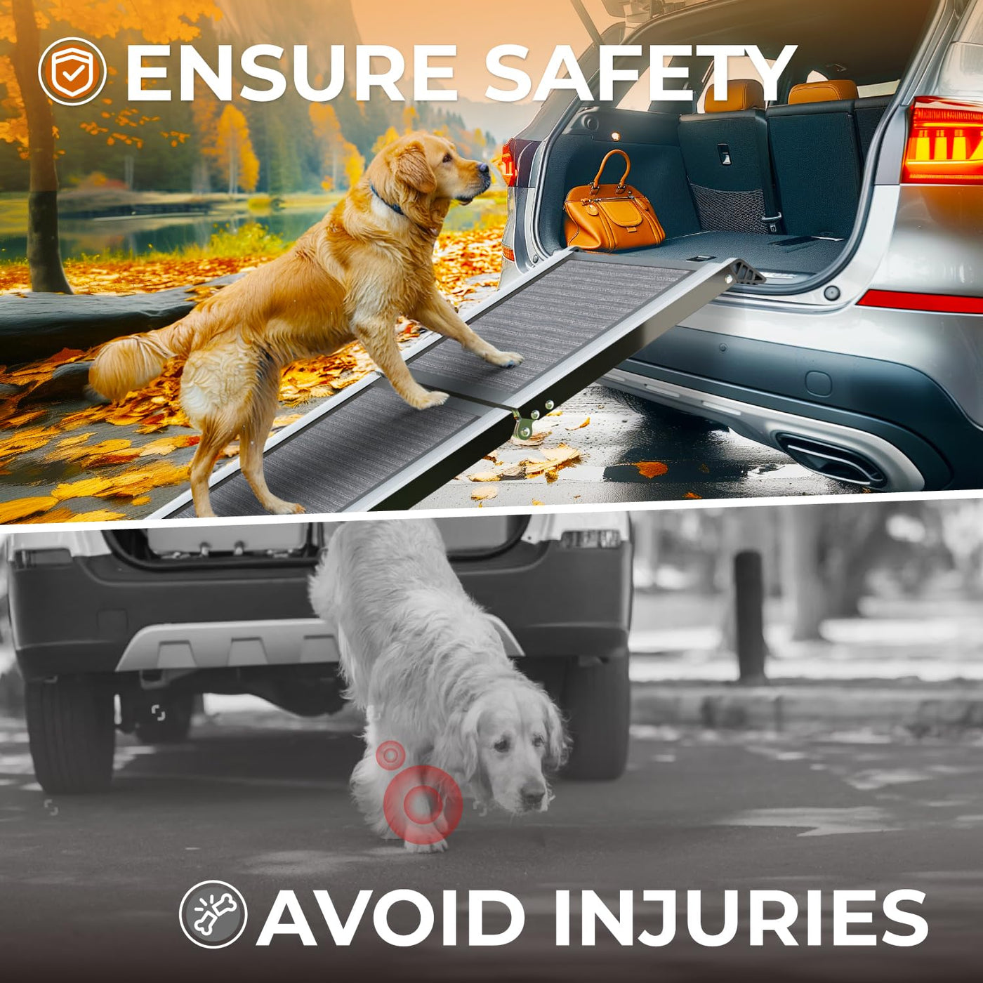 This Foldable Pet Ramp Is An Ingenious And Incredibly Practical Design. Packed With Fantastic Features! Firstly, Its Complete Foldability Allows Easy Storage In The Car Trunk Or Anywhere Without Taking Up Much Space - Absolutely Perfect. Secondly, Its Portability Makes It Usable Anywhere - A Real Game-Changer. Not Only Is It Super Strong And Durable, But It Also Boasts A Heavy-Duty Build. The Top Features A Robust Anti-Slip Carpet, Ensuring Your Pet Stays Secure And Comfy. The Added Carabiner Provides Extra Protection, Preventing Any Sliding Or Movement. No Assembly Required - It Arrives Folded And Ready To Go. Weather-Resistant For Durability. Unfolded, It Measures 62 Inches, Catering To All Pet Sizes, From Small To Large. Lightweight At Around 12 Pounds, Crafted From High-Quality Aluminum, And Supporting Up To 250 Pounds - This Ramp Is A Versatile Solution That Can Also Be Used Indoors For Beds And Couches